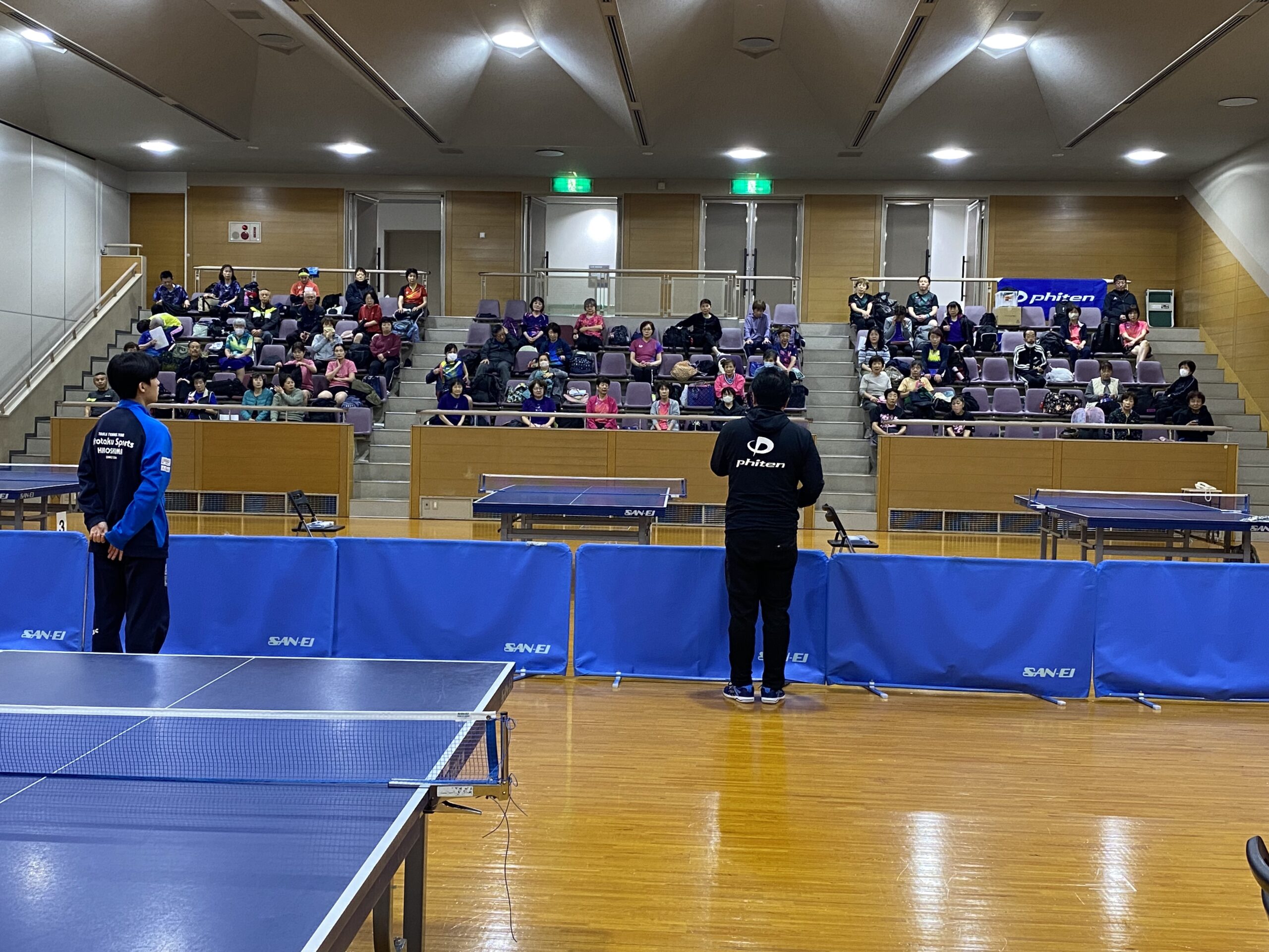 今回はファイテン様にお越し頂き、お昼休みには皆様が健康に楽しく卓球ができるよにファイテン商品の説明と講習をして頂きました。